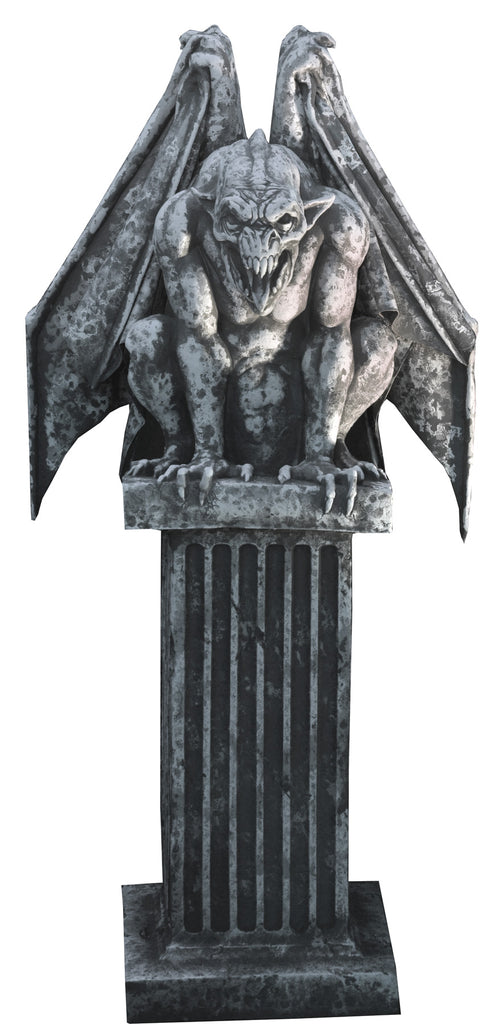 Very impressive Animated Gargoyle ... ALL ELECTRIC, no compressor needed!!, Perfect for rentals, parties, store displays and haunted attractions. This Gargoyle is over 7 ft. tall from the bottom of his pillar to the top of his wing tips, but is self contained and easy to move. Wings move up and down, programmed with the soundtrack. Includes controls, sound and lit eyes. Fog is optional (the Gargoyle has a fog tube embedded in him so that a fog machine can easily be set in place at his base, allowing the fog to travel up through the hose and out of his mouth). Foam and latex with metal armature and plate. Requires only 110V electricity.