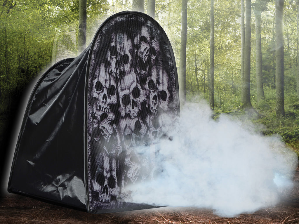 24 inches printed mesh tombstone tent that covers your fog machine. Fog shoots out of the front for a spooky effect! Collapsible construction makes for simple set up and easy storage. Great addition to your Halloween settings!