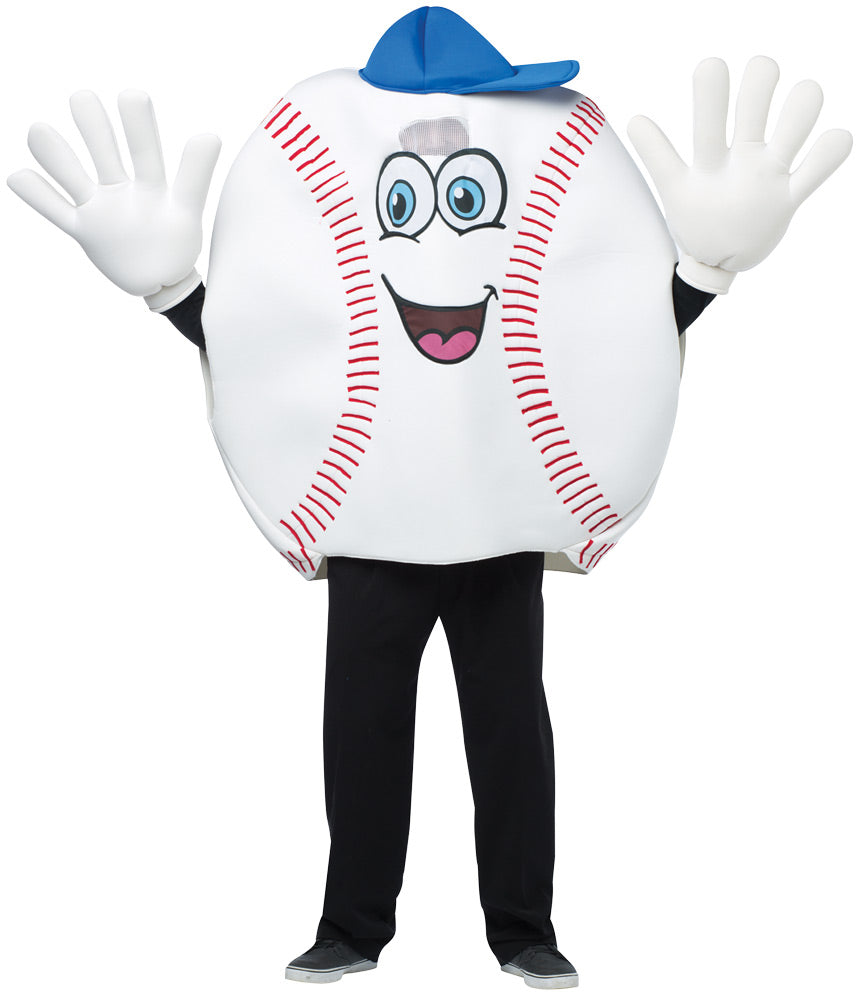 One piece foam-backed polyester fabric body comes with oversized white padded gloves for a funny effect! Add your own black pants and long-sleeved shirt. One size fits most adults up to 6 ft 3 inches.