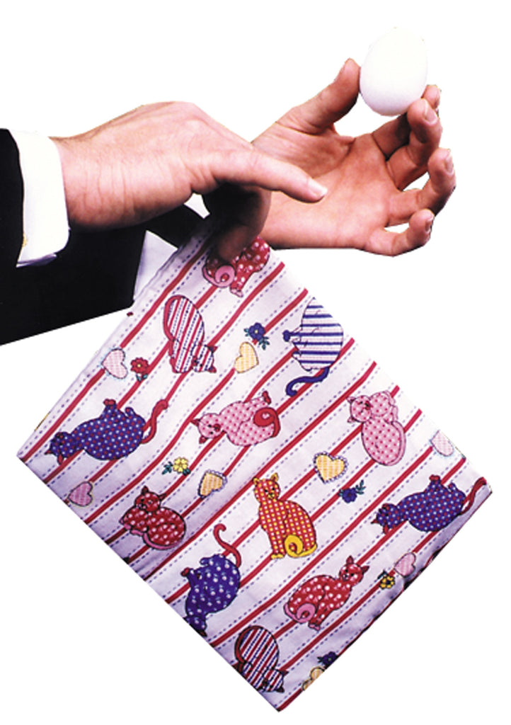 An egg is placed into a bag and made to vanish. The, specatator sees the magician steal the egg from the bag, and place it into his pocket. The magician is caught. The, trick is repeated. This time the spectator thinks that he, sees the egg being placed under the magician's arm. To everyone's surprise the egg isn't under the arm, but is back in the bag. The bag is now turned inside out into a funny looking chicken.
