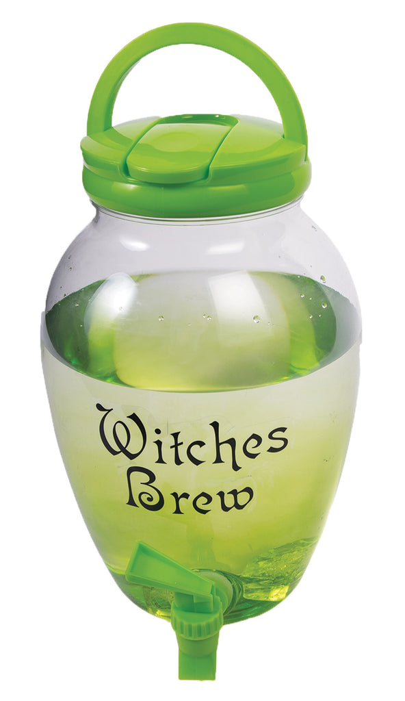 Fun Witch's Brew Drink Dispenser will be a unique way to serve your guests their beverage of choice! Carry handle on the top allows for easy transport, and you can dispense from the bottom or pour from the top. Perfect for your next party! Holds 4.37 liters or 1.15 gallons. 11 inches tall, 6 inches wide.