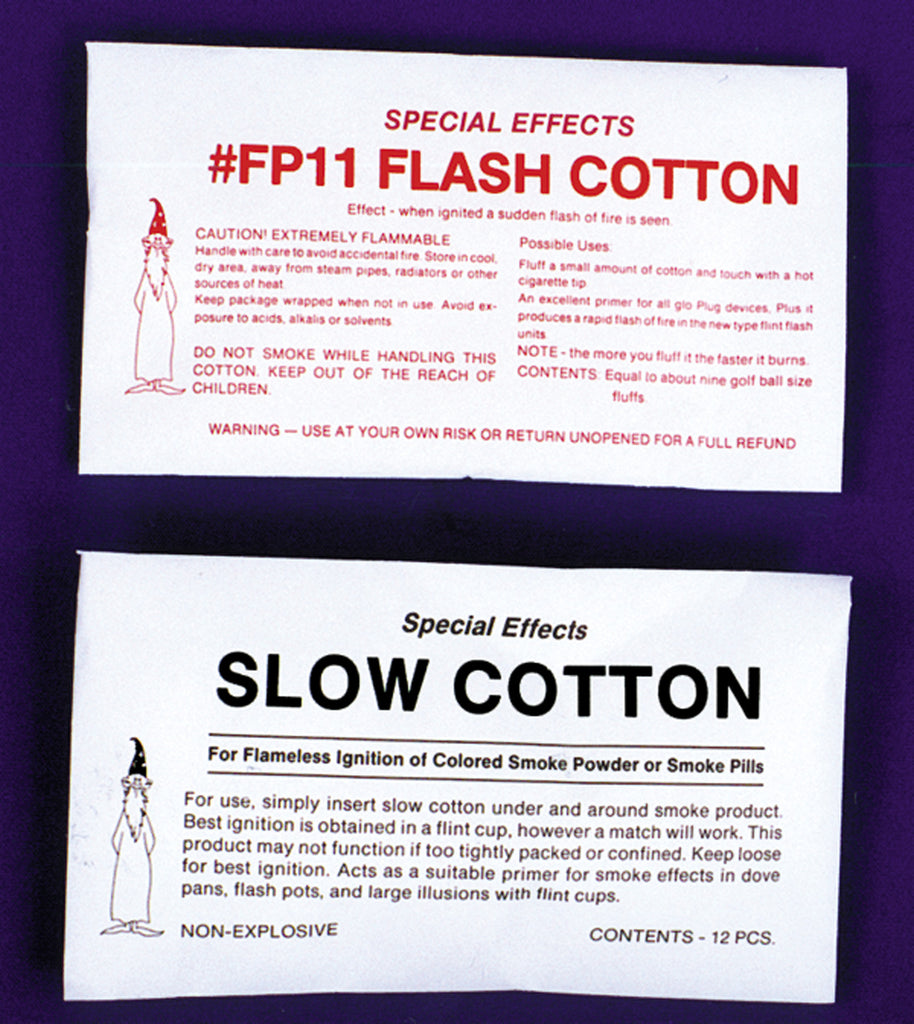 Cotton material, flashes when ignited by cigarette, match, glow plug, etc. Can be used with our hand flashers, confetti launchers and flash pots. Can only ship UPS ground.