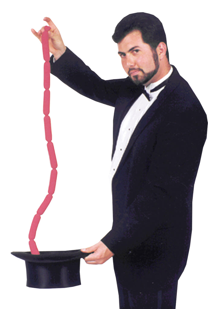 Foam rubber hot dogs to be used with LB218 Omelette Pan or any sponge ball trick as a funny finish.