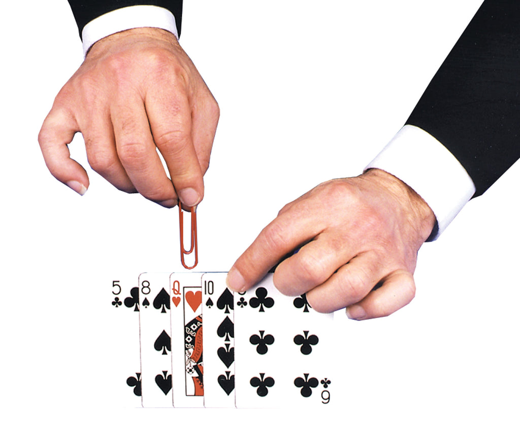A fine card trick to test the ability of your audience to, find the queen (foxy lady). Complete with cards and clip.