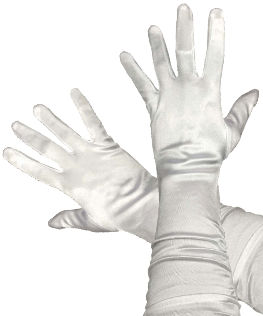 Be the belle of the ball with these elegant long white adult gloves! These classic gloves are opera length--the glove length debutants always wear. They are made from a lovely white satin and are stretchy and easy to put on. Opera gloves go great with strapless sleeveless cap or short sleeves and will add that extra touch to your costume or gown. One size fits most adults.