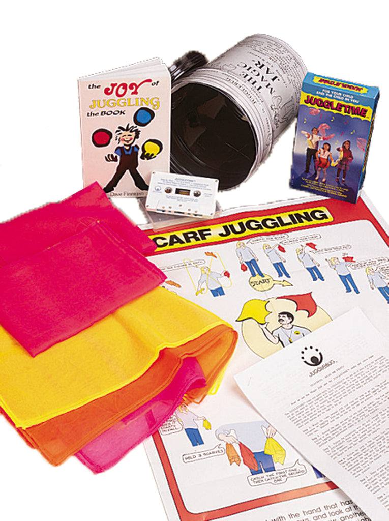 Self instructional kit with 36 scarves includes the magic jar book video audio, 36 nylon scarves, poster and complete instructions