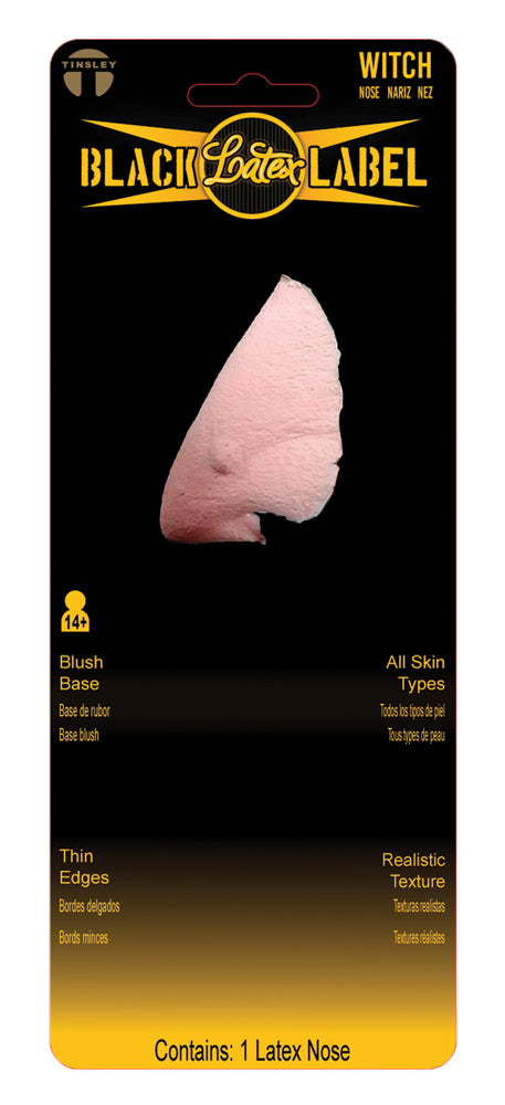 Latex Witch Nose has very thin edges for a smooth application. Blush base has a good flesh color with a realistic skin texture. Apply with Spirit Gum, not included.