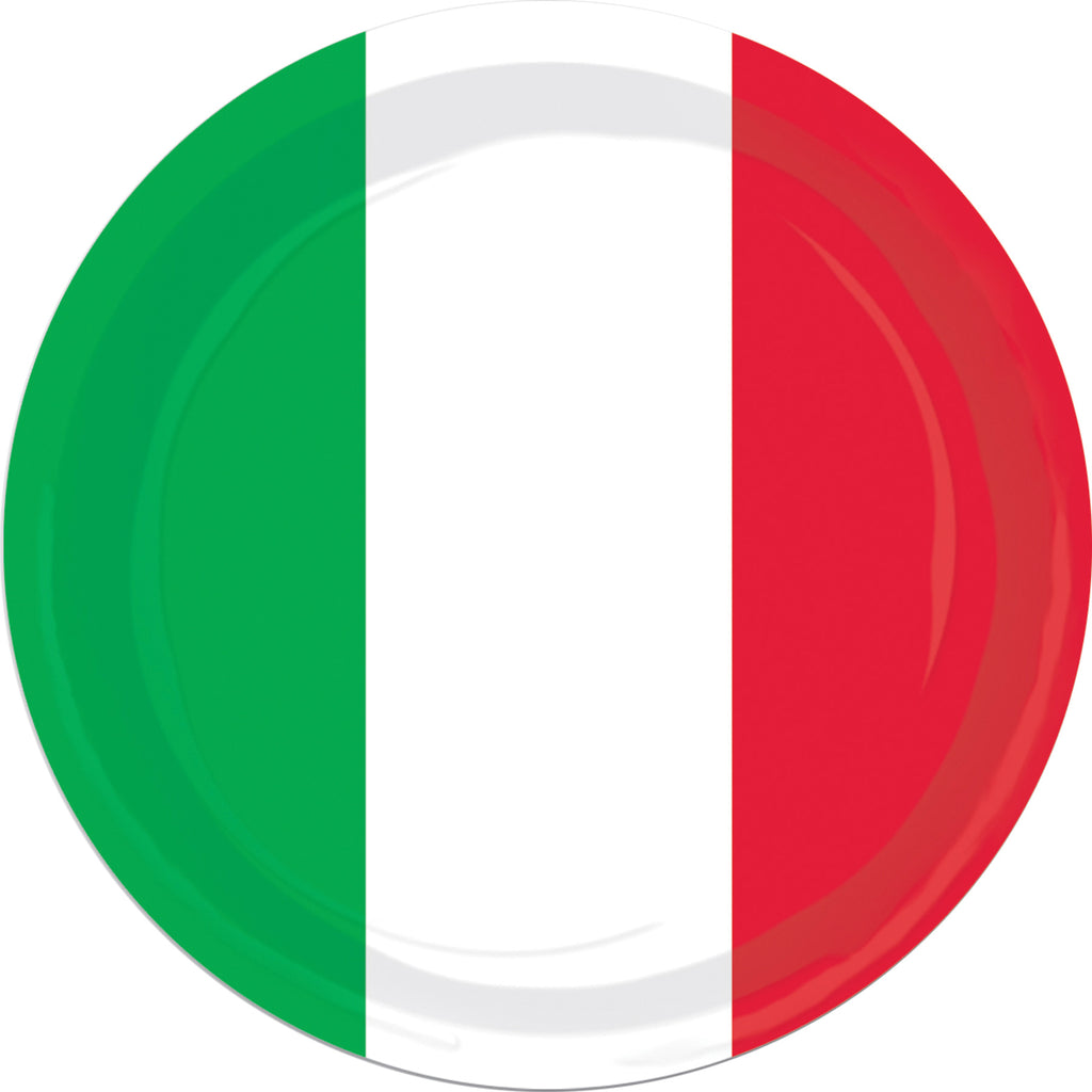 The perfect plates for your Cinco De Mayo party! Red, white and green like the Mexican flag. Paperboard. 8 plates per item. 9 in.