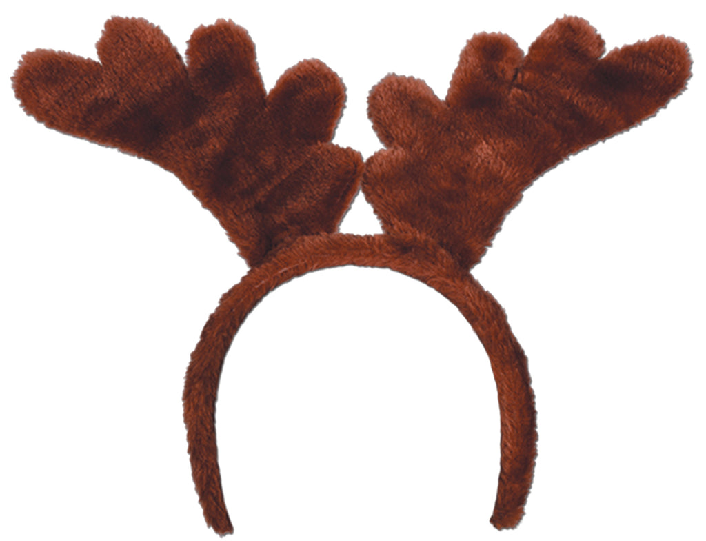 Great for any Christmas event, these traditional-look plush reindeer antlers will put you and anyone who sees you in the perfect Christmas mood. Plush/Plastic. One size fits most. Includes snap-on headband.