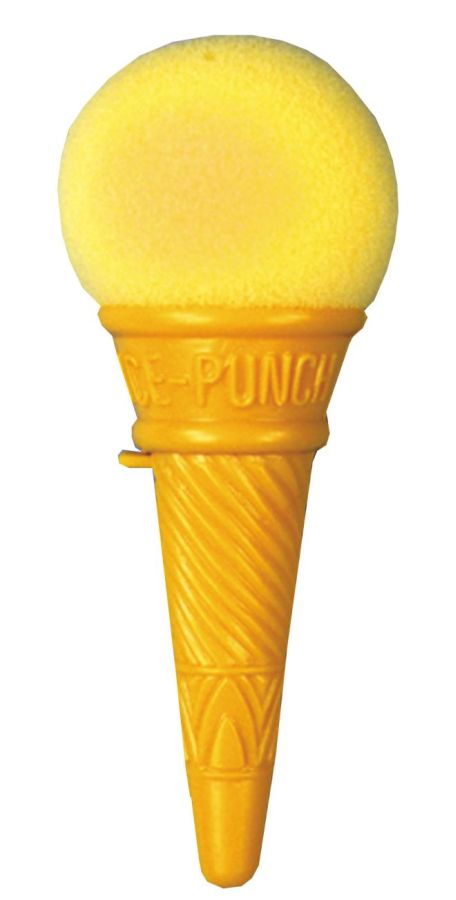 Plastic cone with a sponge ball inchesice cream inches scoo attached to the cone with a string. Just press the button on the side and the ball springs off to surprise your friends! Assorted colors of sponge balls only.